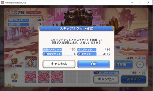 今回のイベントイベントボスからスキップができるようになった模様。 (3回討伐すると開放されるっぽい) こういった周回要素をスキップチケですっ飛ばせるのがプリコネの超良いところ。 ここ最近ずっと限定キャラ連発してるのが超悪いところ。